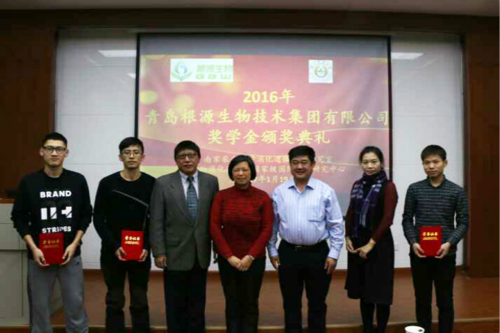 1月19日,“根源獎學金”頒獎典禮在南京農業大學消化道微生物實驗室隆重舉辦,南京農業大學動物科技學院博導朱偉云教授,集團張大偉博士、肖志壯博士、周莉芬博士出席本次頒獎典禮。南京農業大學消化道微生物實驗室研究生劉壯榮獲2016根源獎學金一等獎,研究生余水清、張亞南榮獲2016根源獎學金二等獎。