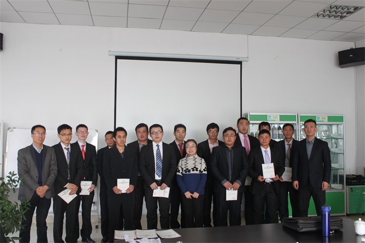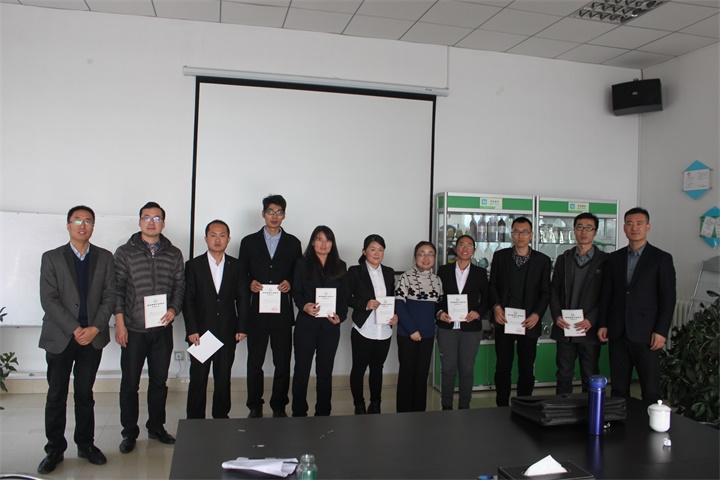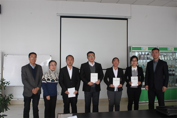 隨后,張濤女士、孫志剛先生、張宗國先生依次頒發了生產技工序列、化驗序列、市場技術序列、研發序列的技能證書,并與大家合影留念。